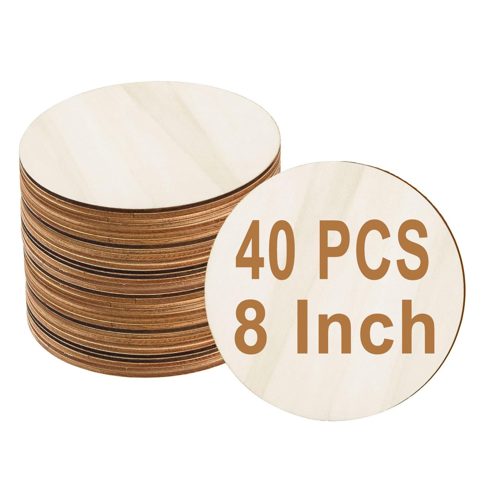 - Value Package: 40 pieces 8 inch unfinished wood circles. Thickness: 1/8 inch (3mm)